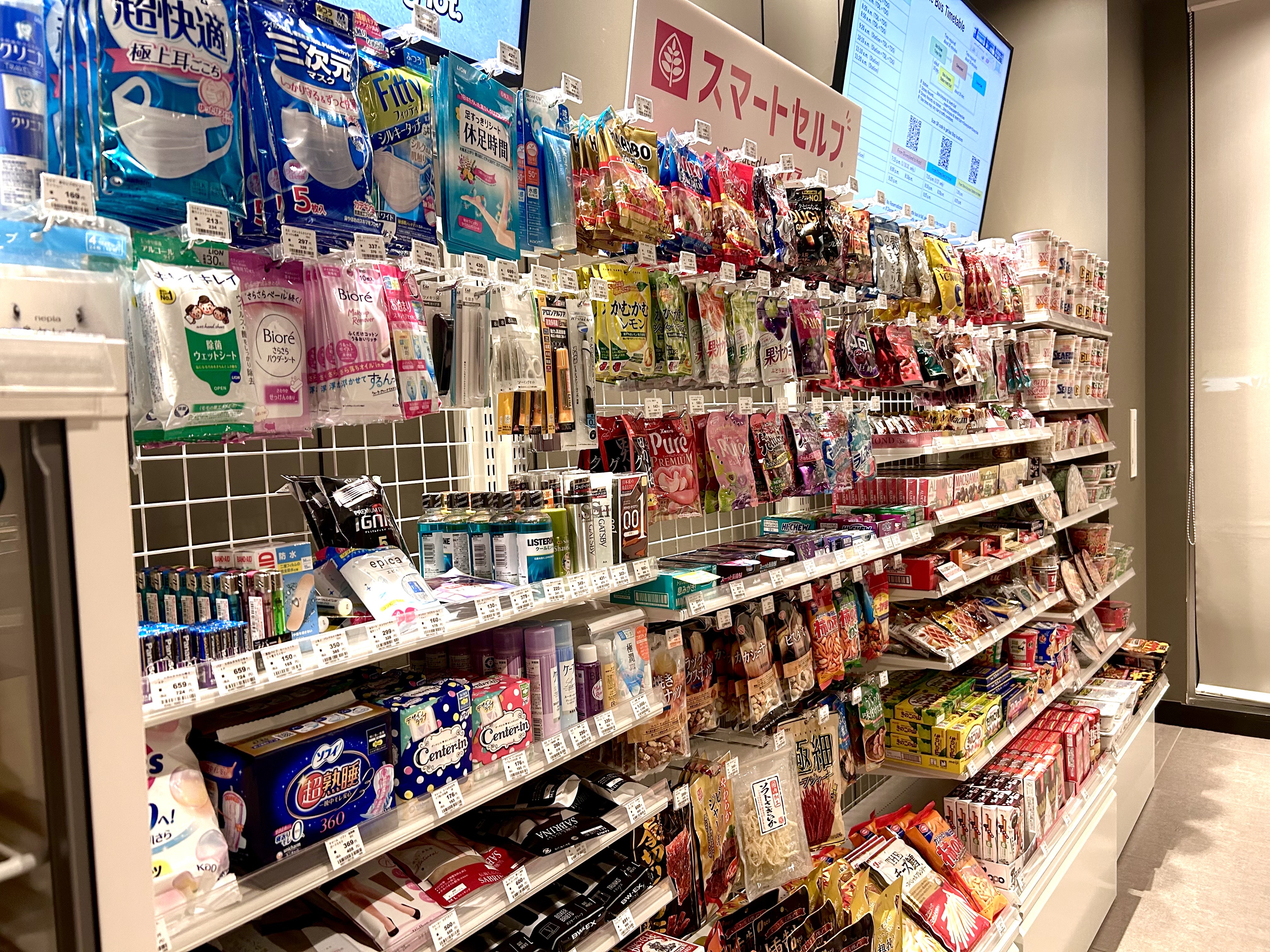 ソフトドリンクやスナック、旅行に便利なあったら嬉しいグッズをご用意しております。